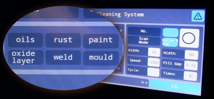 Radno sučelje ovog stroja za pulsno lasersko čišćenje od 1000 W nudi 9 načina čišćenja: